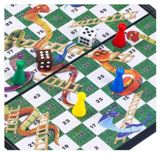 Includes four colorful player figures (red, green, yellow, and blue) and a pair of dice for a complete gaming experience.
